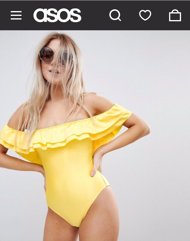 Ruffle Vibes – the yellow and off the should ruffles make this simple suit a next level contender. I would pair with statement earrings for a total Beach Babe look.