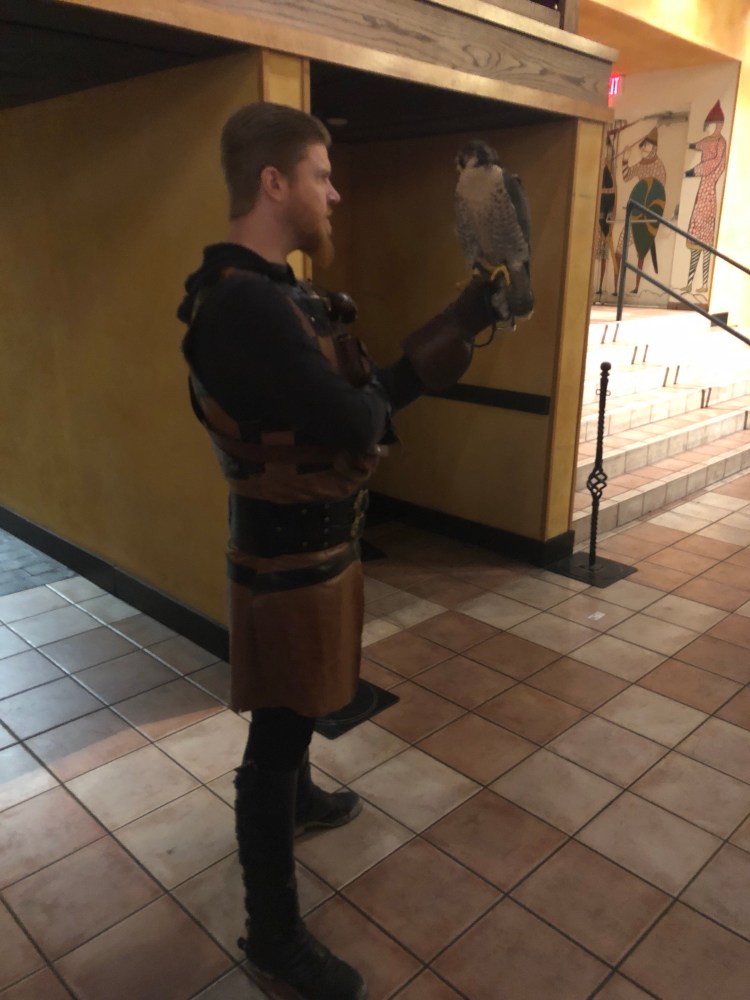 The Hall has bars, a sitting area and retail space with swords, cups, shirts and other branded items. We grabbed some drinks, bought Westley a light up sword and took some photos.