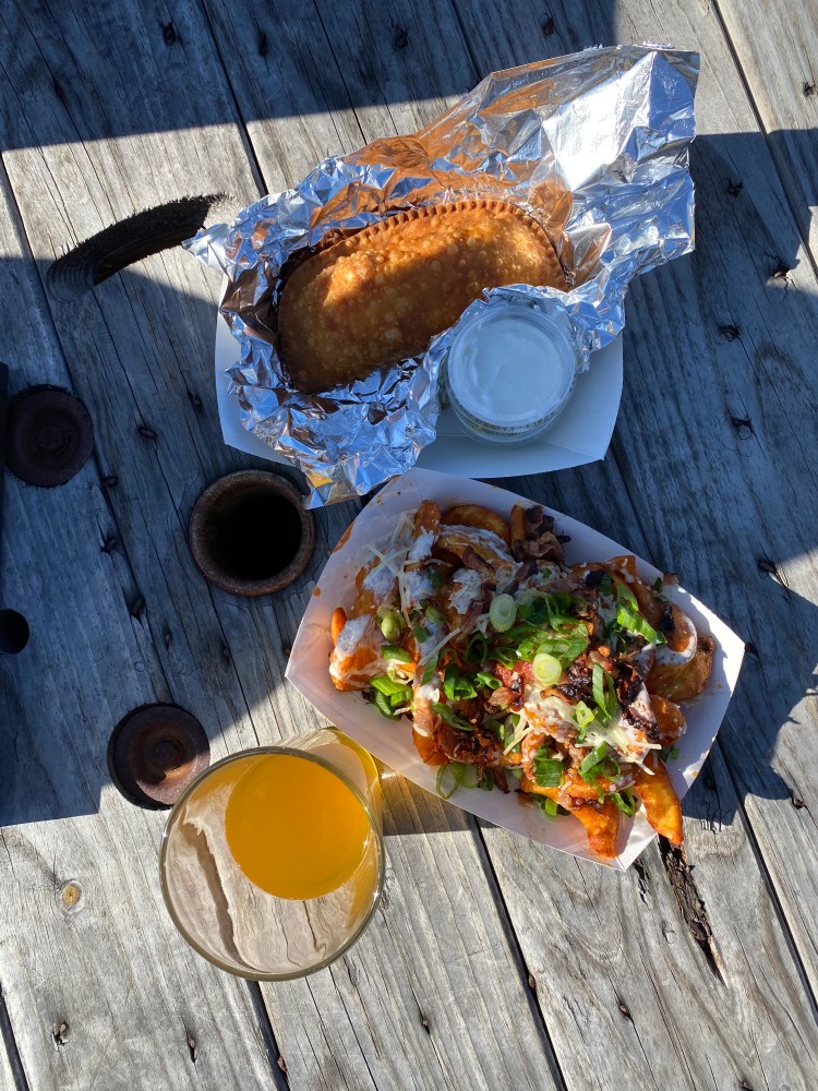 Sam tried two of their beers including the signature Banana infused beer. We also checked out Booch and Mia’s food truck and ordered their loaded buffalo fries (incredible) and the Empanada (sooo good). After lunch, we took a tour of the brewery, learning more about its origin and the beer making process.