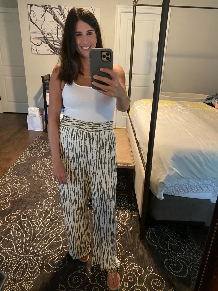Look #1 – Pair with a white bodysuit (or black) and neutral sandals