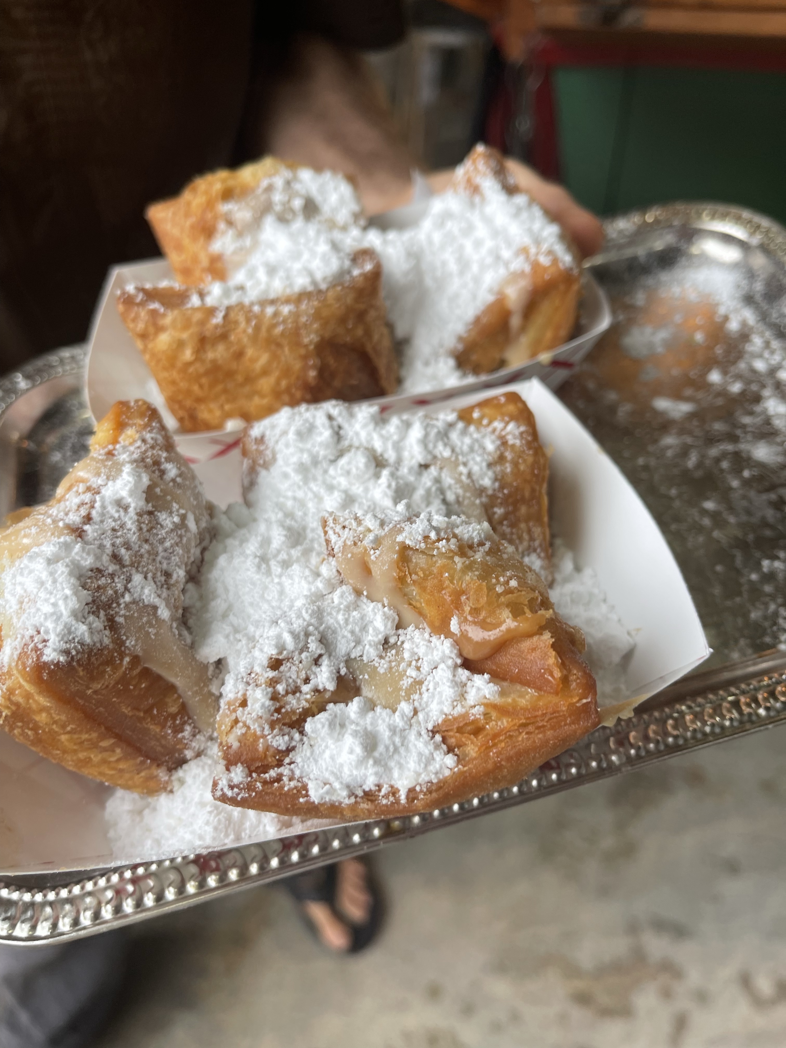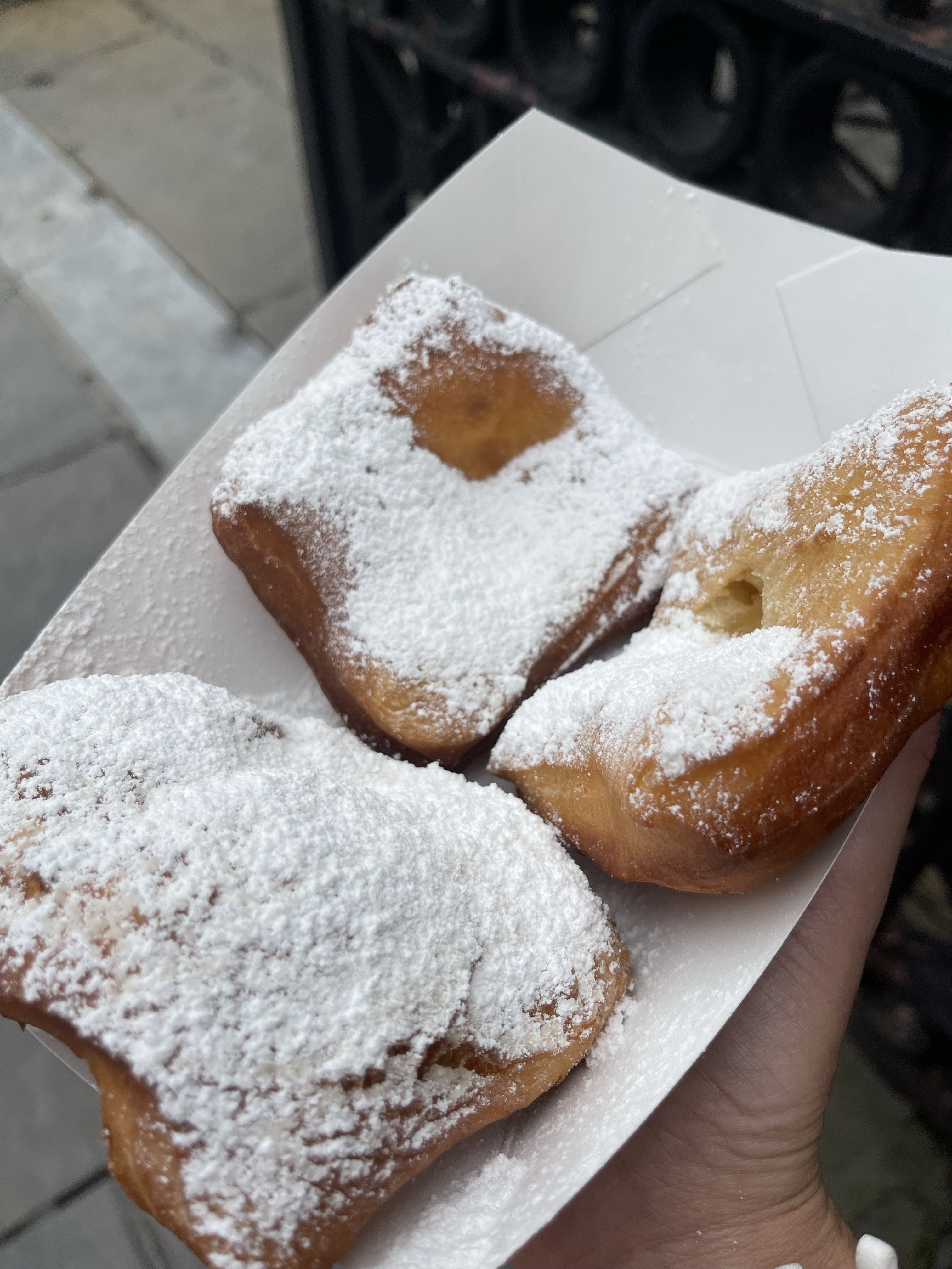 We kicked off our foodie adventure with a visit to Cafe Beignet for beignets and iced coffee. The cafe was packed and we ended up eating the beignets while walking. These were good, but no where near as delicious as Loretta’s (more about those beignets later). But when in NoLa…you have to stop by!